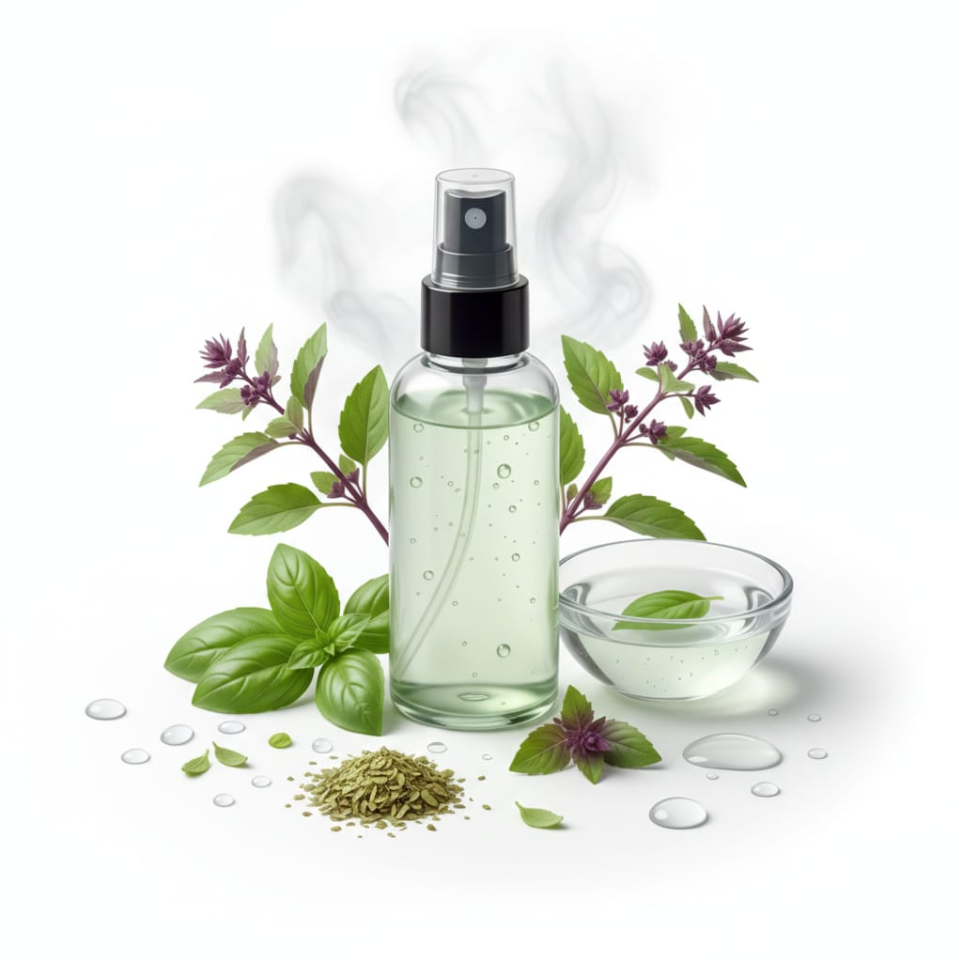 Basil Hydrosol is obtained through the steam distillation of fresh Ocimum basilicum leaves, carrying the herb’s refreshing, sweet, and spicy aroma with subtle green undertones. Traditionally celebrated in Ayurveda and herbal medicine, Basil Hydrosol is prized for its clarifying, uplifting, and purifying properties.