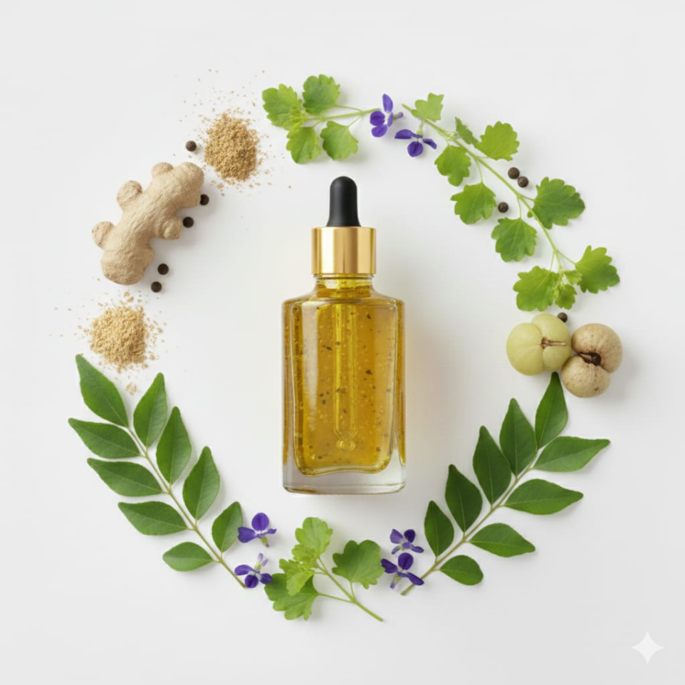 Herbal Infusions: Brahmi extract (primary), often combined with Amla or Bhringraj in traditional blends