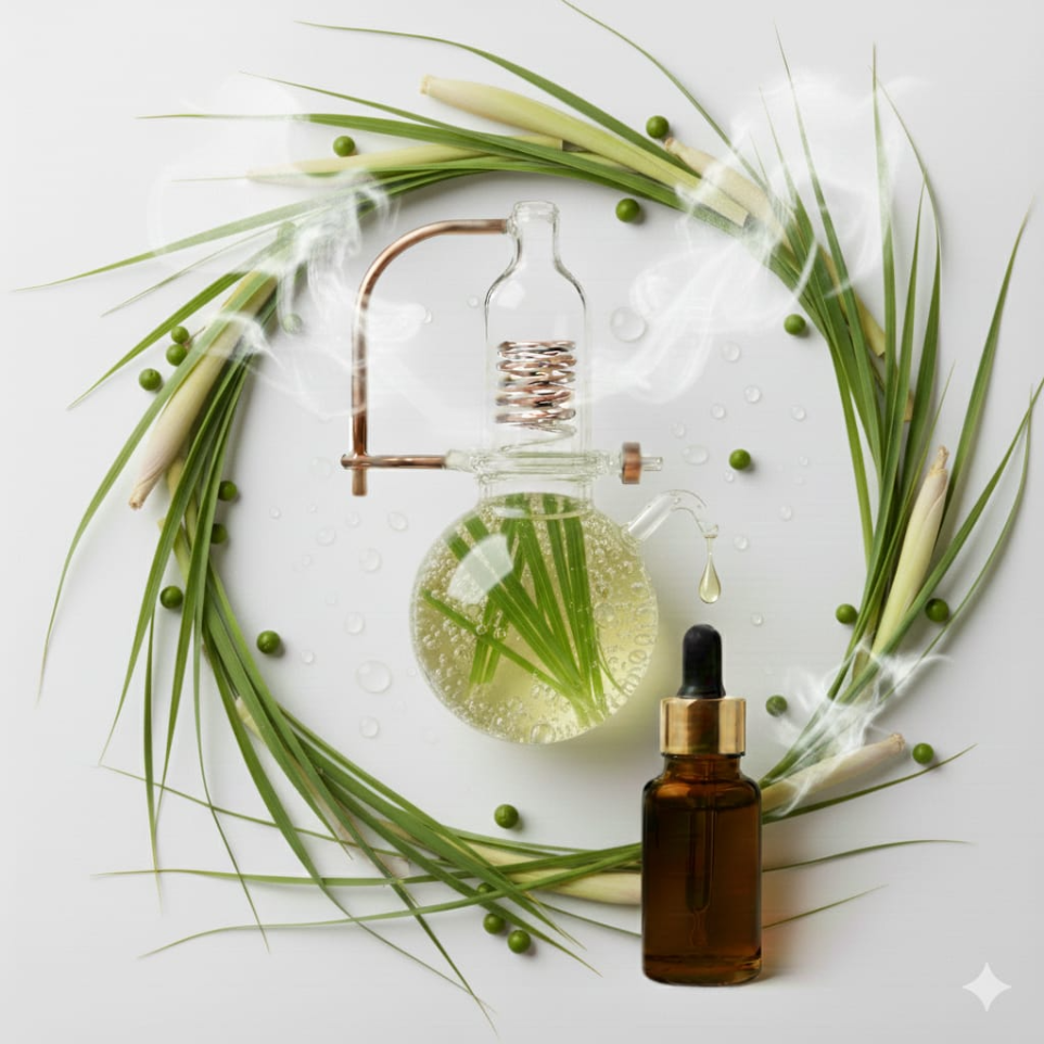 Citronella Oil is extracted through steam distillation from the fresh or partly dried leaves of the Cymbopogon species (commonly Cymbopogon winterianus and Cymbopogon nardus). Known for its fresh, lemony, and uplifting aroma, Citronella Oil is a natural insect repellent widely used in mosquito-repellent formulations, candles, sprays, and diffusers.