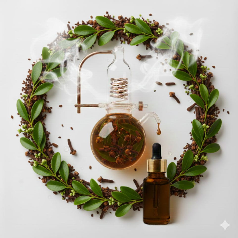 Clove Oil is obtained by steam distillation of the dried flower buds of the Syzygium aromaticum tree. Known for its warm, spicy, and woody aroma, this essential oil is rich in eugenol, which gives it strong antimicrobial, analgesic, and antioxidant properties. Traditionally used in Ayurveda, dentistry, and natural medicine, Clove Oil is also popular in aromatherapy, perfumery, food flavoring, and personal care formulations.