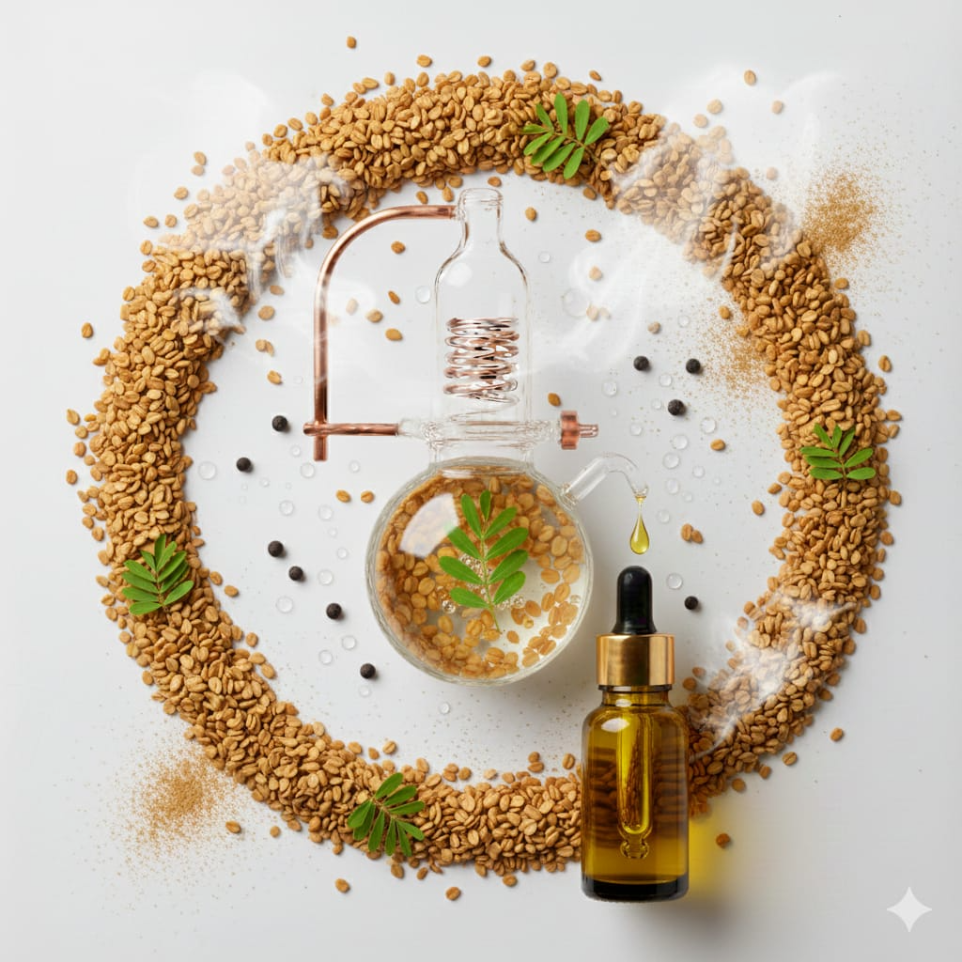 Major Constituents: (varying by batch – often fenugreek-specific fatty acids and aromatic compounds)