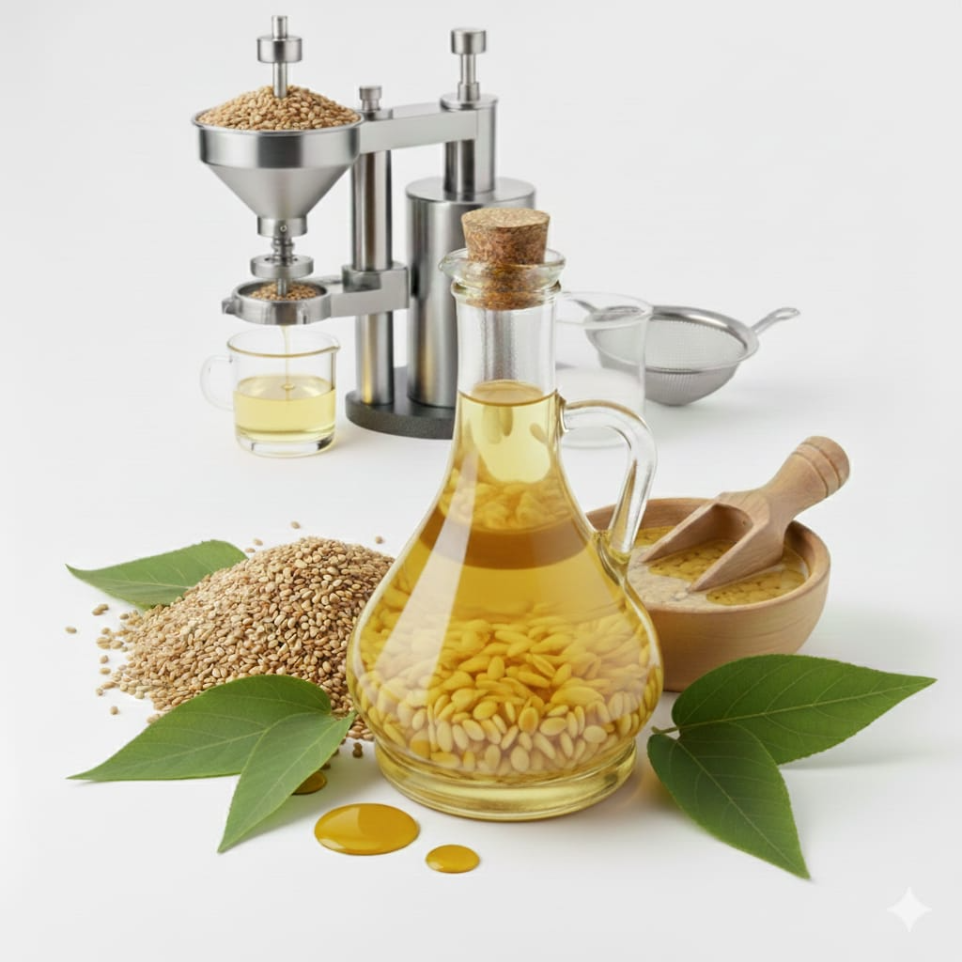 Sesame Oil, commonly known as Til Oil, is extracted from the seeds of Sesamum indicum using the cold-press method to preserve its natural nutrients. Known as the “Queen of Oils”, it is rich in sesamol, sesamin, and vitamin E, offering powerful antioxidant, anti-inflammatory, and nourishing properties.